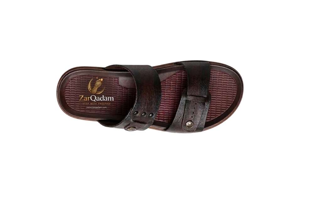 Elevate your everyday footwear with the ZarQadam Cushioned Footbed Slippers. Designed for the modern man who refuses to compromise on style or comfort, these slides blend traditional craftsmanship with a contemporary aesthetic. Featuring a deep, chocolate-brown textured strap and a signature maroon contoured footbed, these sandals are the epitome of “Stepping with Prestige.”
