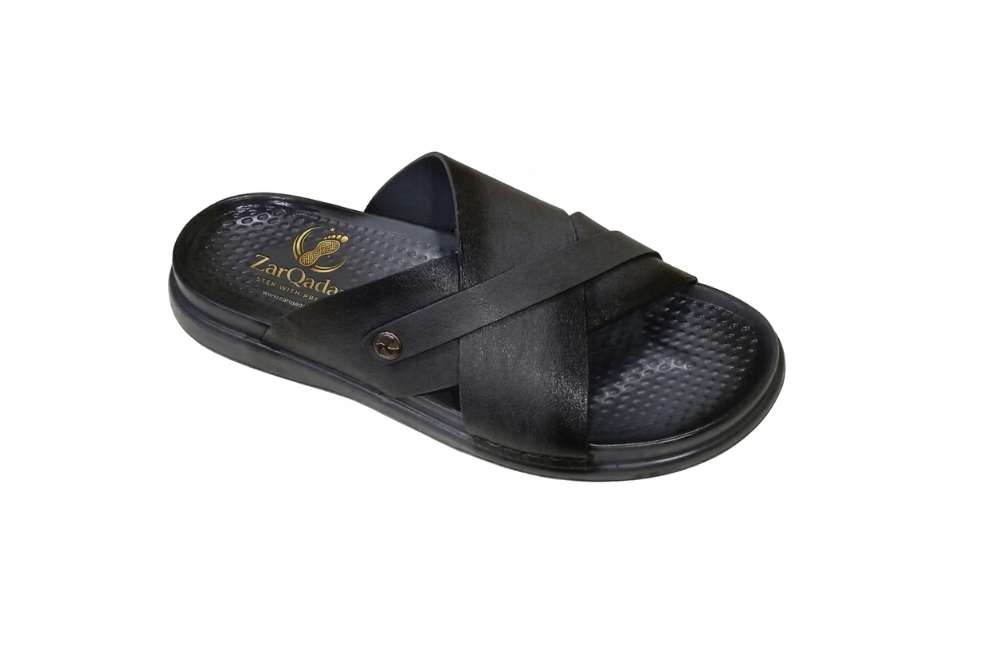Crafted in a striking matte black leather-style finish, these cross-vamp slides redefine casual sophistication. The prominent criss-cross strap design creates a structured, yet effortless profile that commands attention. It’s not just footwear; it is an extension of your persona, blending traditional utility with a sharp, contemporary edge.